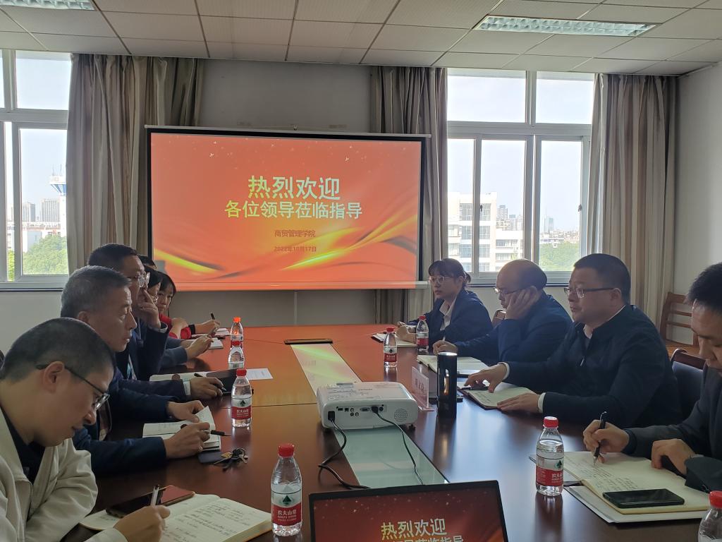 2022年10月17日下午,学校党委副书记胡文蔚一行来商贸管理学院进行调研,商贸管理学院党政班子成员、各专业负责人参加调研会。