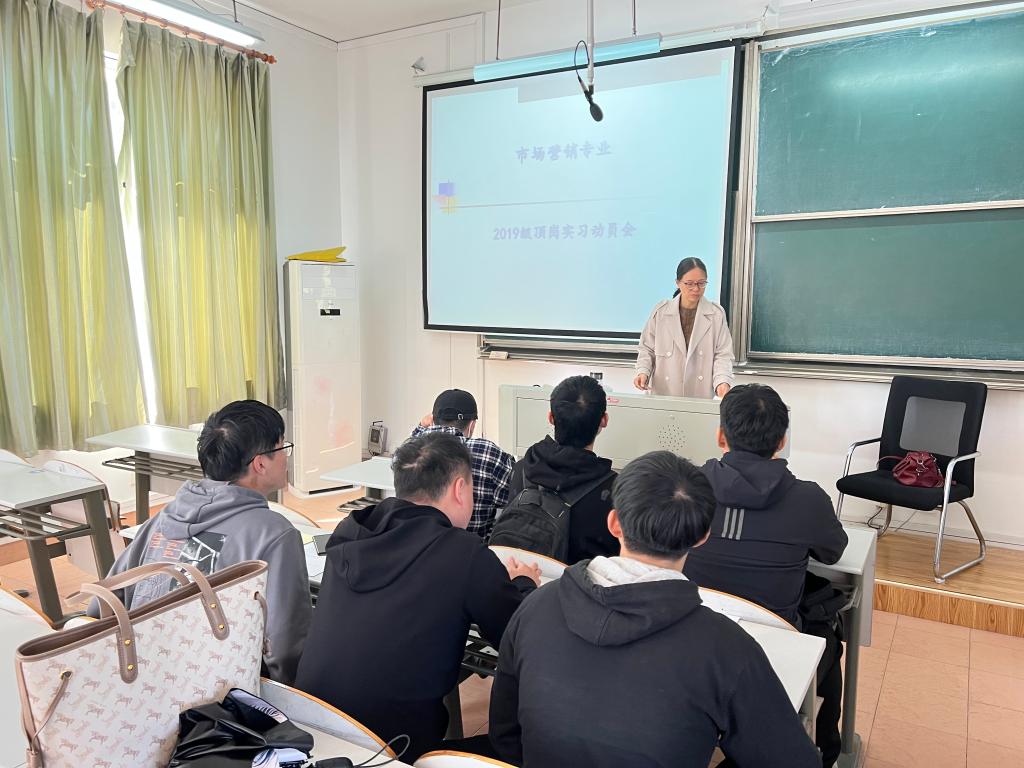 为了引导学生树立正确的实习观、加强学生对就业形势与顶岗实习的认知、指引学生做好顶岗实习前的各项准备工作、推进顶岗实习工作的顺利开展,2022年11月18日上午,商贸管理学院市场营销专业在教一303教室举行了2019级顶岗实习动员大会。此次会议由曹垣老师主持,营销N191全体学生参加。