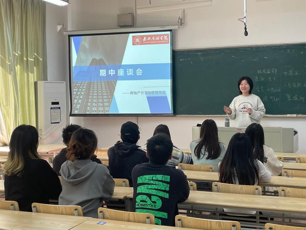 2022年10月25日中午,嘉兴南湖学院商贸管理学院房地产开发与管理专业在教一109召开2021-2022第2学期中期座谈会。会议由邵方璇老师主持,房地产N191、N201各班的班长、团支书、学习委员等共10名同学及全体专业老师参加。