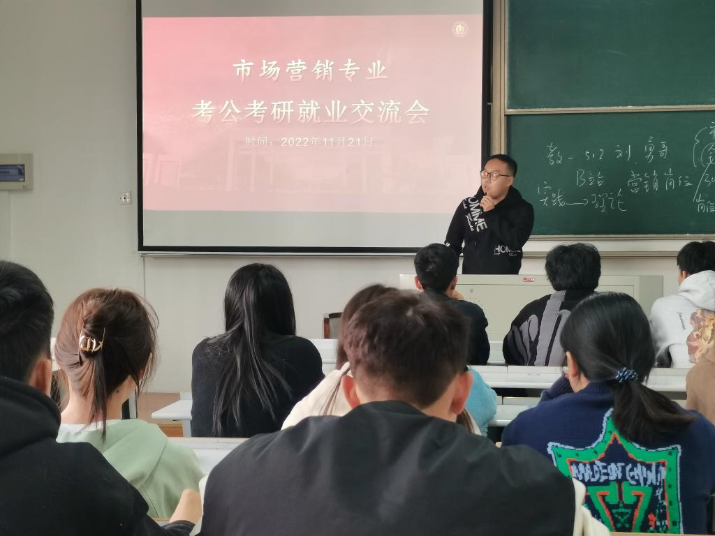 为引导商贸管理学院市场营销专业学子做好考公考研就业的规划,最大程度缓解学生因考研考公就业迷茫产生的心理压力,经前期走访调研,收集学生反馈的问题,市场营销专业于2022年11月21日下午在教二B406开展针对性的考公考研就业交流会。会议由俞杰龙老师主持,班主任潘嘉亮、李艳杰老师以及市场营销专业各年级学生代表参加了此次交流会。