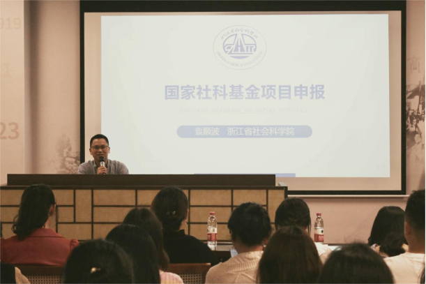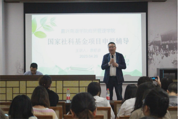 为了更好地组织教师积极申报国家社会科学基金项目等各类课题,促进教师了解最新的政策及科研信息,4月20日下午,商贸管理学院在图书馆一楼报告厅举办了国家社科基金项目申报辅导讲座,南京大学管理学博士、浙江省社会科学院科研管理部主任袁顺波应邀作辅导报告,讲座由商贸管理学院党委副书记刘勇主持,商贸管理学院相关教师到场听讲。