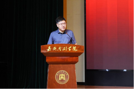 典礼在庄严的国歌声中拉开帷幕,全体师生肃立齐唱,歌声激昂。教师代表潘嘉亮博士在发言中勉励同学们,在人工智能重塑商业逻辑的时代,要夯实专业基础、涵养儒学素养、树立远大志向,传承“开天辟地、敢为人先”的红船精神,争做有理想、有本领、有担当的商院学子。