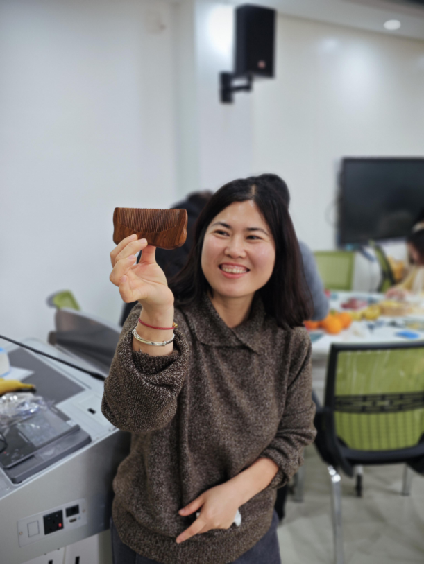 经过两个小时的精心制作,一件件独具匠心、温润质朴的木工作品在老师们手中诞生。活动最后,大家自豪地展示自己的劳动成果,并分享制作过程中的心得与喜悦。此次活动不仅让女教职工们在忙碌的工作之余享受到手作的宁静与治愈,更深刻体验了中华优秀传统工匠精神与教育工作者“匠心育人”理念的共鸣,为她们的职业生涯留下了一段独特而美好的“年轮”记忆。