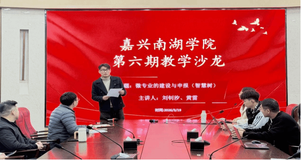 2026 年 3 月 19 日下午,聚焦“迎评促建”工作目标,扎实推进教学评估各项准备工作,我院在第六会议室成功承办 2025-2026 学年第六期(总第四十期)教学沙龙活动。本期沙龙以 “微专业的建设与申报” 为主题,刘钊汐老师、黄雷老师担任主讲嘉宾,分享微专业建设实践经验,市场营销专业教研室主任俞杰龙老师、侯庆辉老师等院内外教师参与活动。本次教学沙龙由侯庆辉老师主持。
