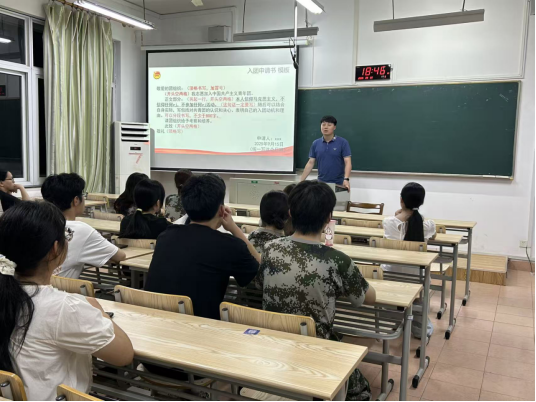 活动伊始,付晓豪老师对新生的到来表示亲切的问候并对同学们积极争取入团的态度表示充分肯定,希望大家积极参与学院群团组织活动,以身作则,早日加入团组织;随后,院团务中心负责人从诺祎结合PPT对入团发展流程展开讲解,并对新同学提出的入团问题进行现场解答。